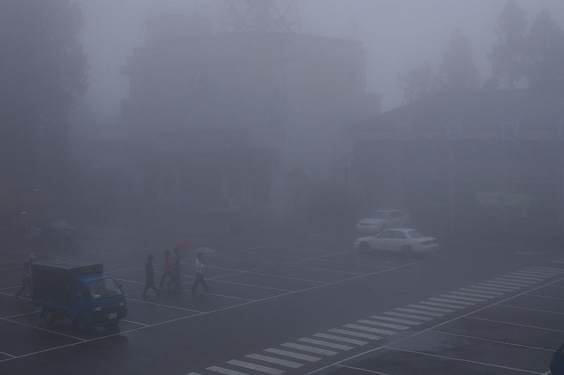 我忘記在哪裡看到整個台18號說只有一個加油站,雖然我不太相信,但在大霧瀰漫能見度最差只有不到10公尺的山區公路中忽然看見加油站時,還是相當高興。台18公路有很明顯的分段大霧區,這個在之後我們上山跟下山都遇到,會有一整段能見度超差的區域,然後忽然之間好像這世界上從來沒有起霧過一樣的乾淨。